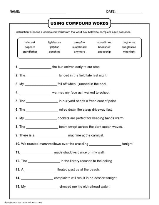 Using Compound Words Worksheets