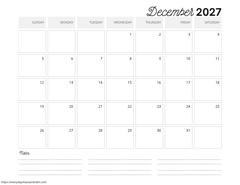 Download Your Free Printable December 2027 Calendars