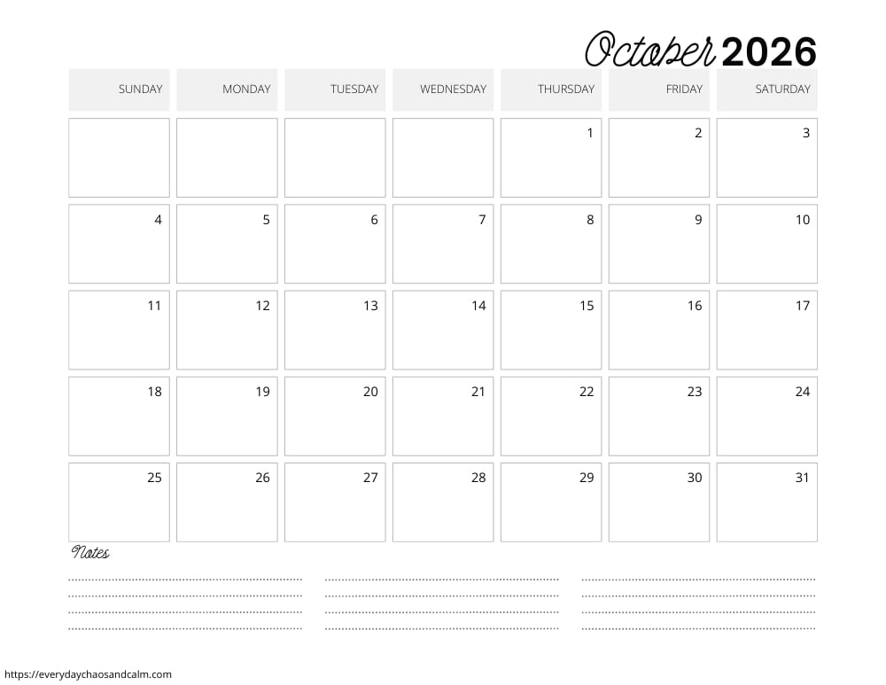 Download Your Free Printable October 2026 Calendars