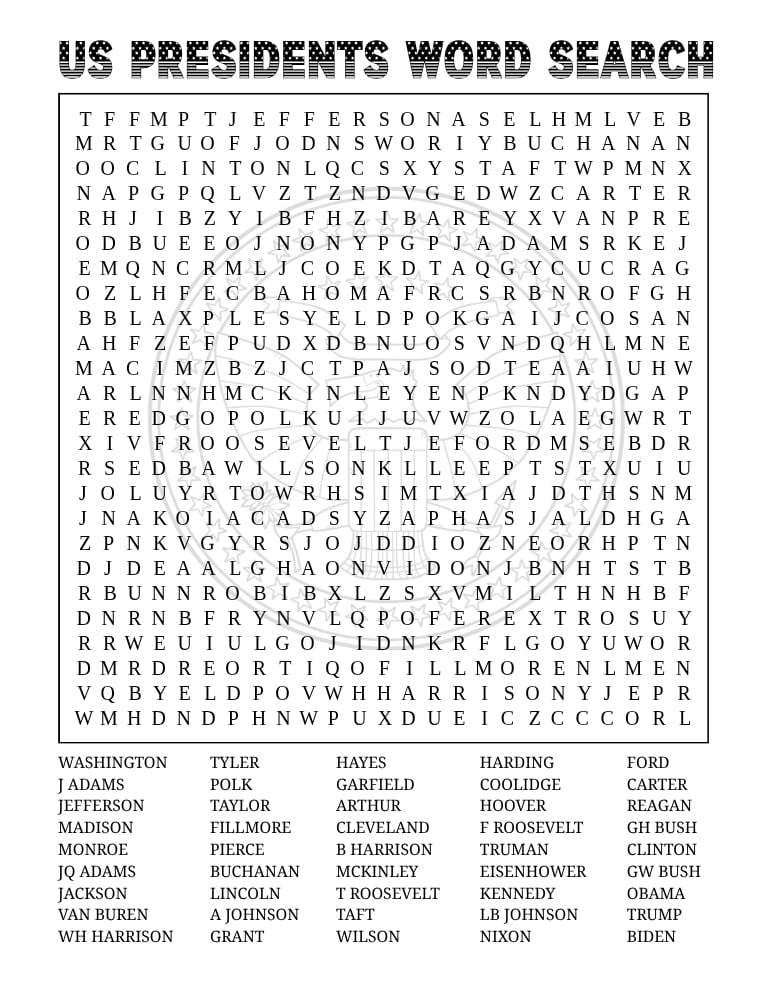 Pair this word search with our President Biography Worksheets and US President Coloring Pages to help kids learn even more about the presidents.